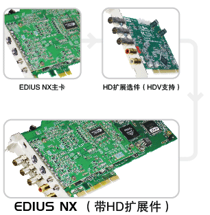 通过选配EDIUS NX的HD扩展选件,可将EDIUS NX升级为EDIUS NX(带HD扩展件)。扩展件提供1080i 、720pHD视频的全质量、全分辨率、实时分量输出,以及立体声RCA非平衡音频输出接口。 | |||||