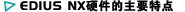 | EDIUS NX除了对传统的标清格式如:DVCPRO 50*、DVCPRO(输入)、DVCAM、DV提供了很好的支持外,还对主流及新兴的高清格式如:DVCPRO HD*、XDCAM、P2、AVCHD、HDV等提供了全面的支持。这样EDIUS NX可以与多种高/标前期设备连接,组成完备的高/标清编辑解决方案。 | ||||||